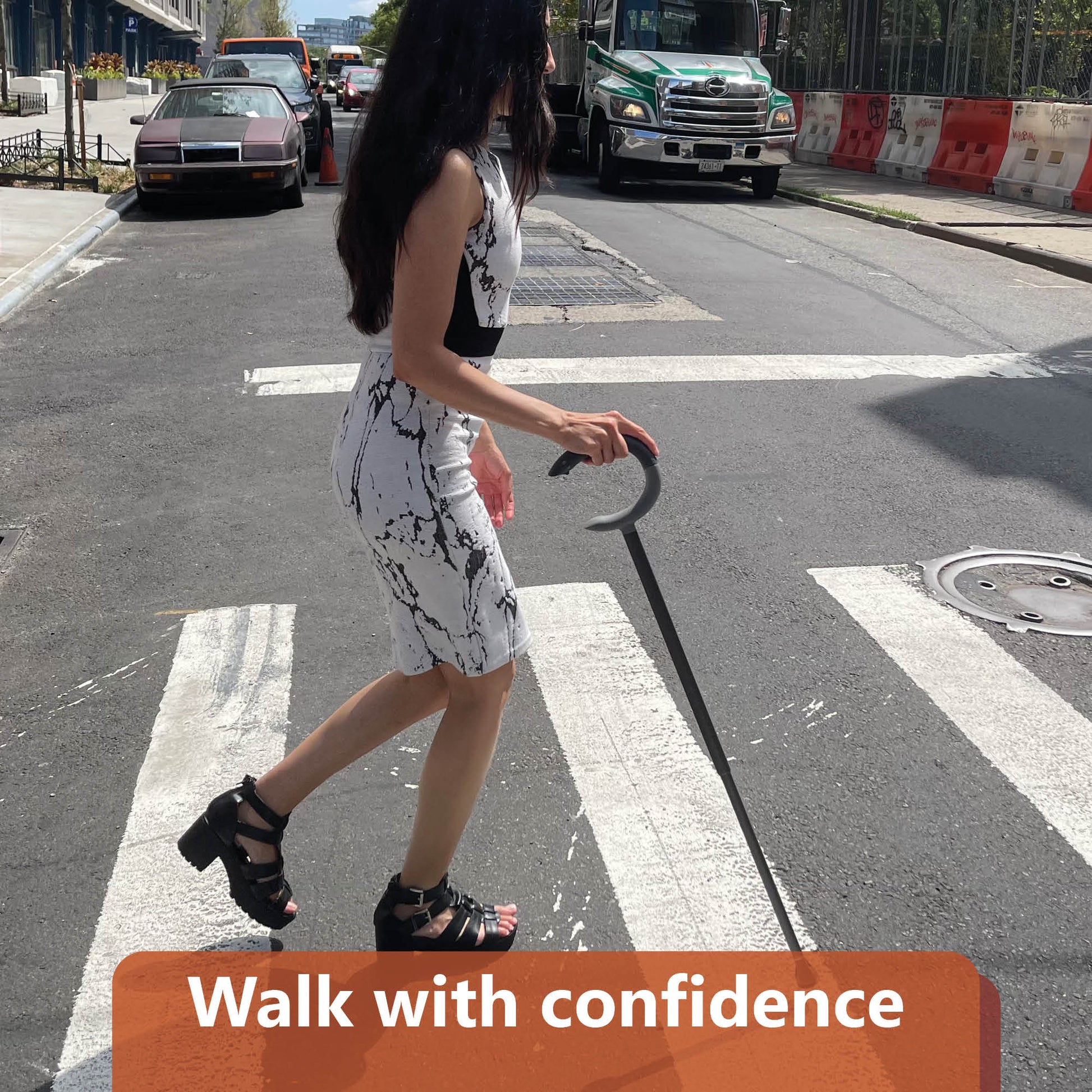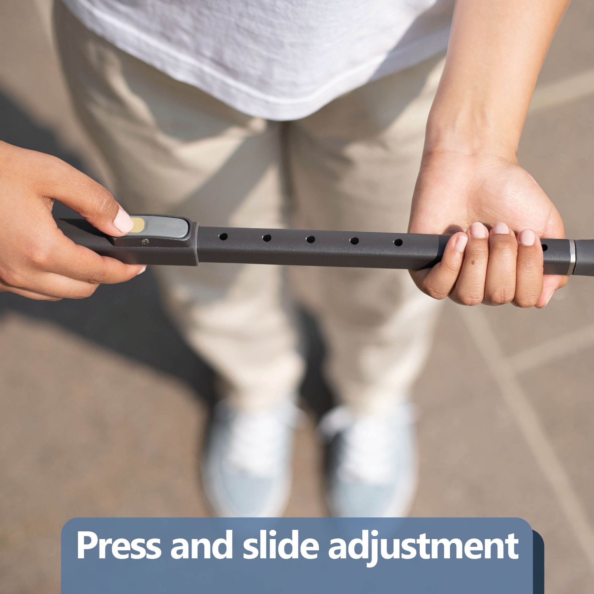 The same open form that enables the two-handed rise also supports a comfortable single-hand grip and natural wrist position during walking. One handle. Two functions.